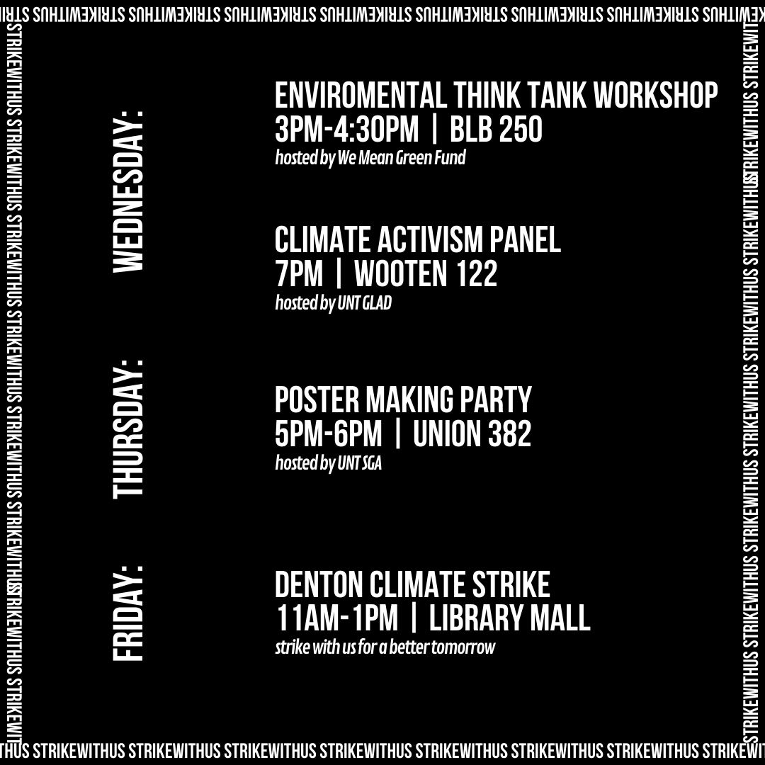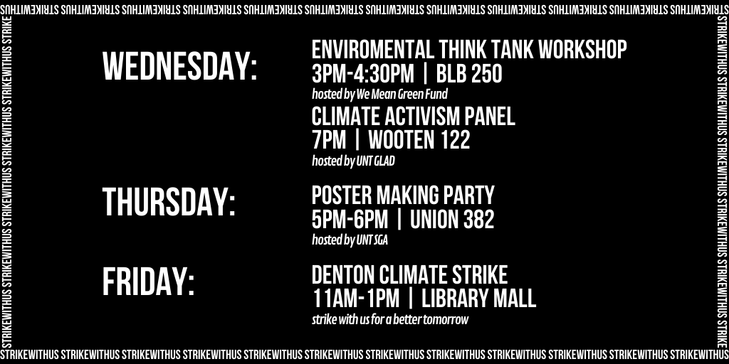 In collaboration with the Global Climate Strike on September 20, 2019, the Denton Climate Strike provided a space for people across the North Texas area to gather and demonstrate in support for stronger climate action. The Denton Climate Strike had over 150 people in attendance.