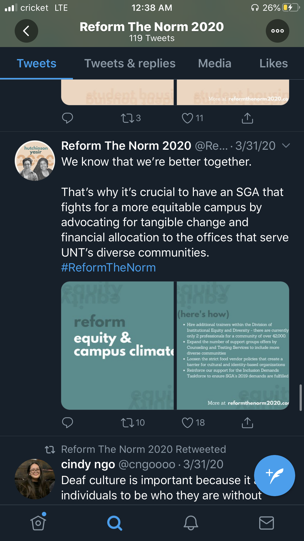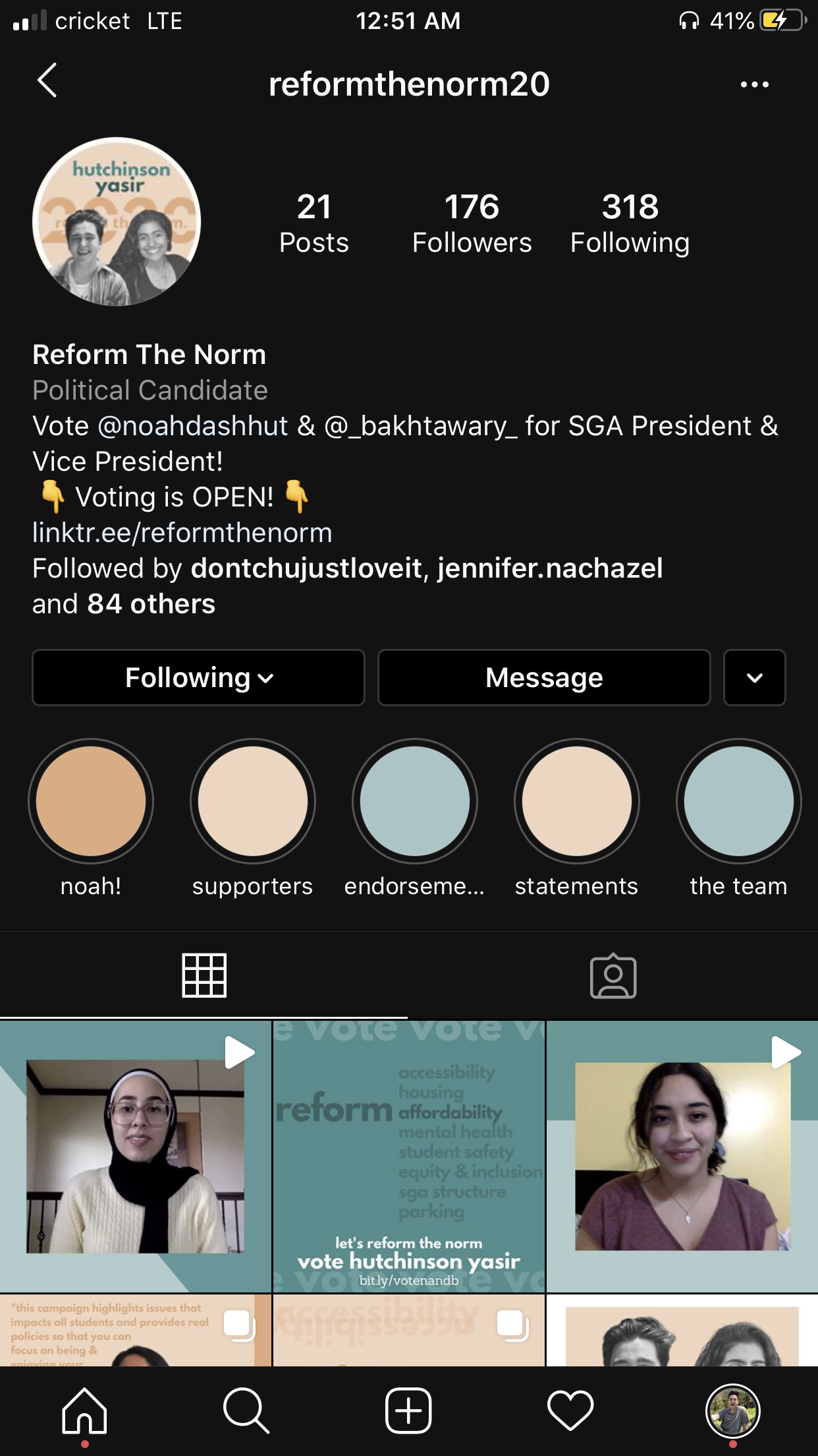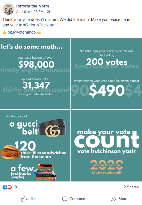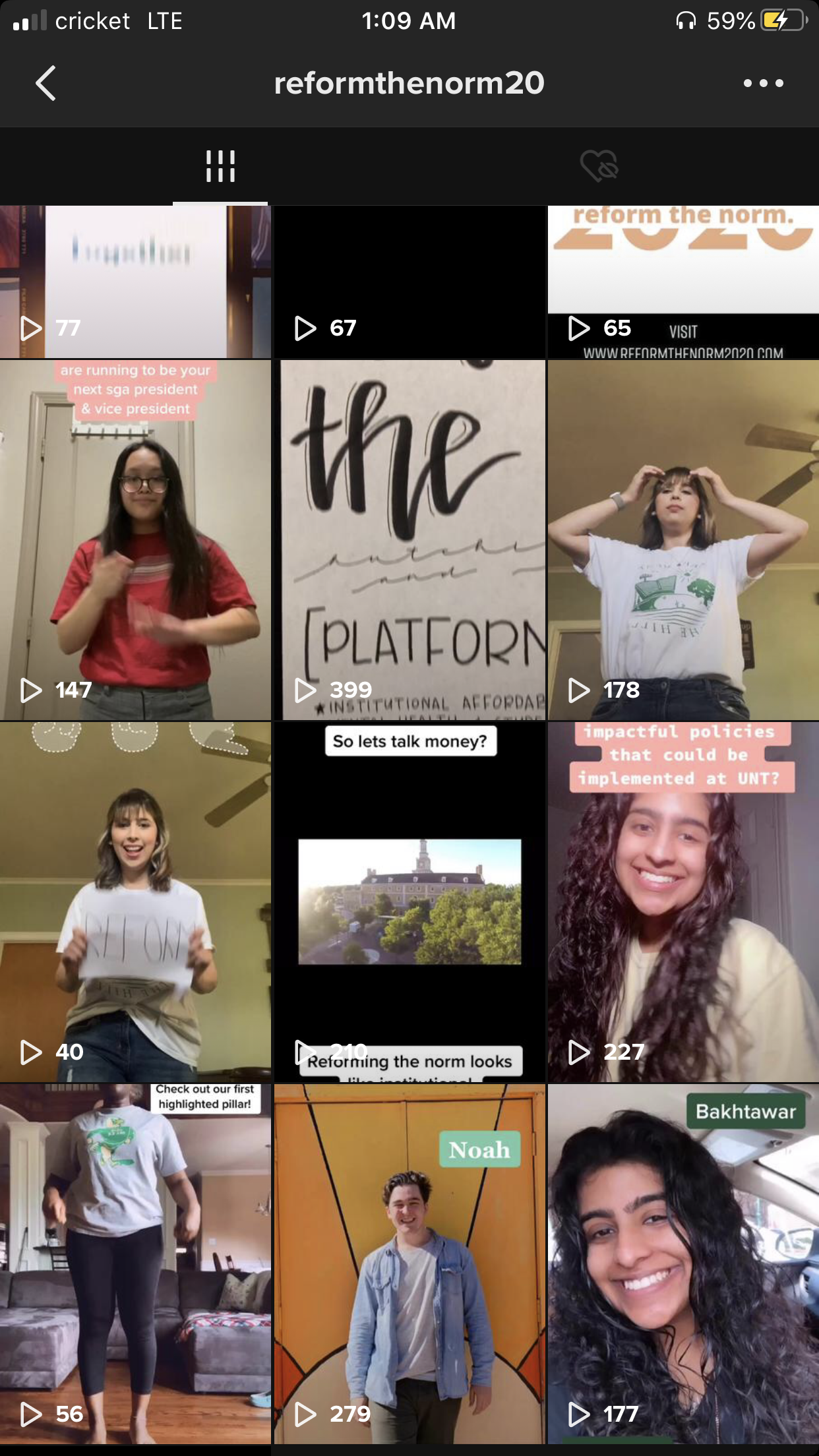 For the first time in UNT’s history, we lead a 100% digital campaign to meet students where they were in the midst of the global COVID-19 pandemic. Alongside my amazing running mate Bakhtawar Yasir and over the course of months of planning and just 11 days of campaigning, here’s how we reformed the norm.
