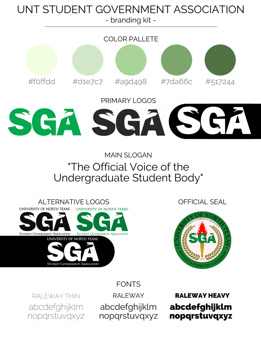One of my first goals with my role was to create a brand for SGA that would show our Mean Green pride while conveying uniformity across our social media, promotional materials, and graphics